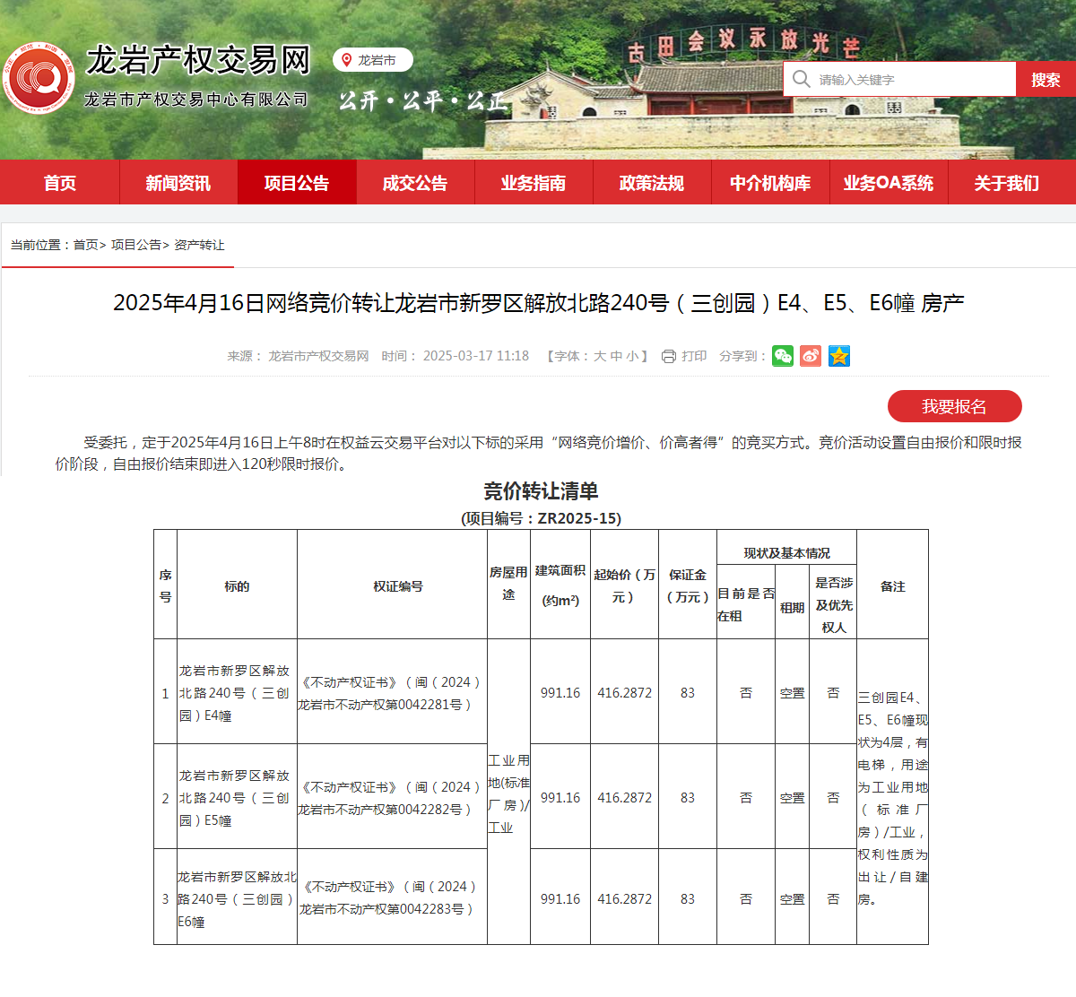 更多详情请点击(龙岩市产权交易网:http://www.lycqjy.com/article/xmgg/zczr/202503/20250300006624.shtml)